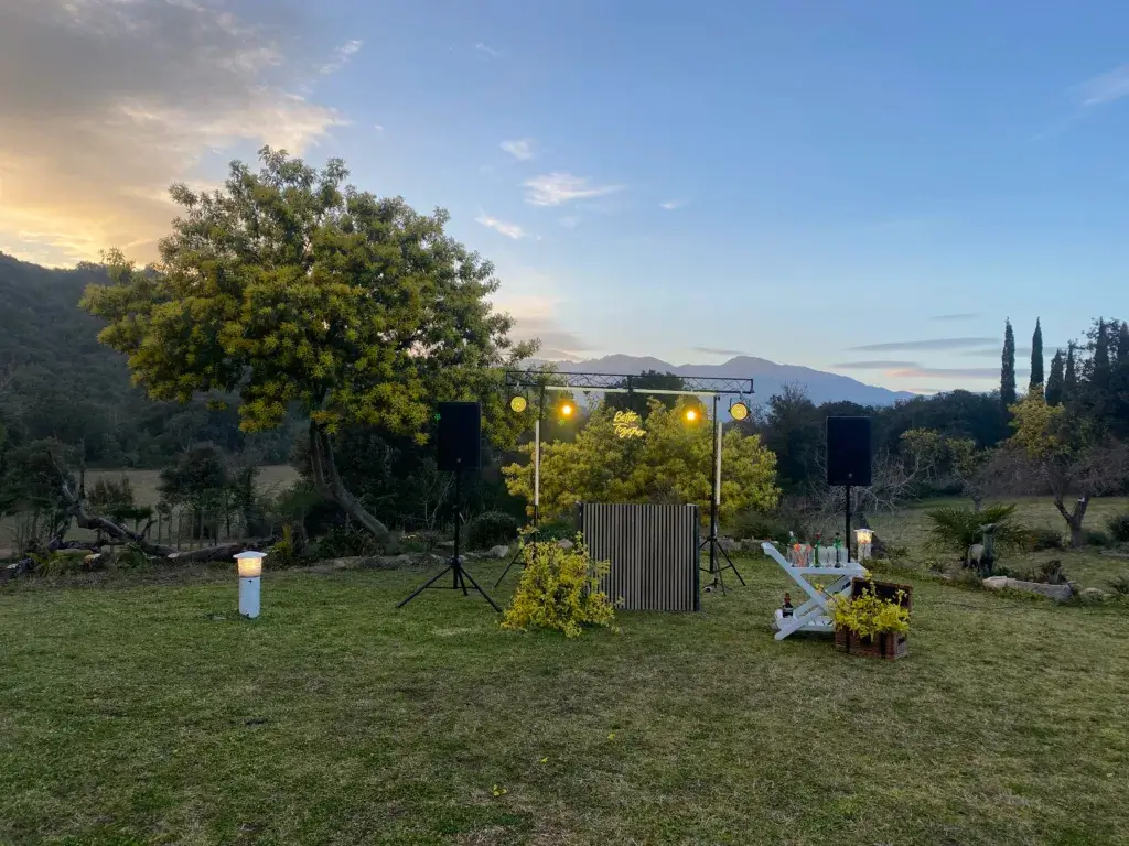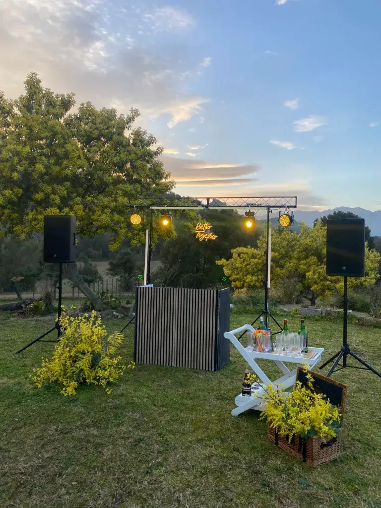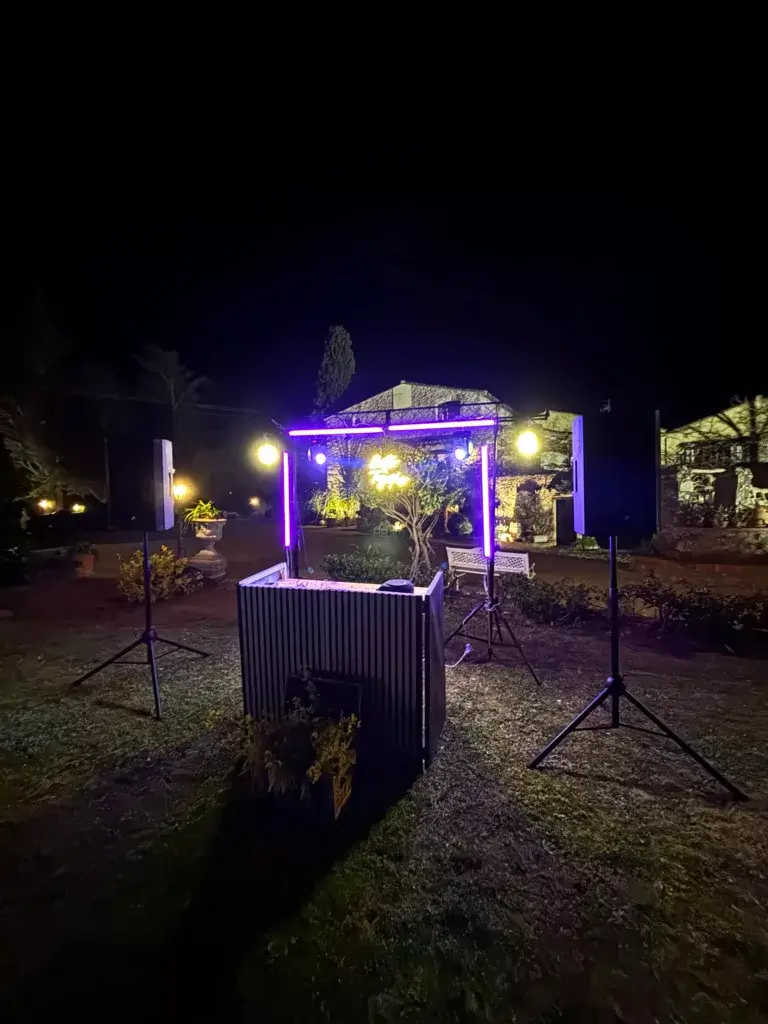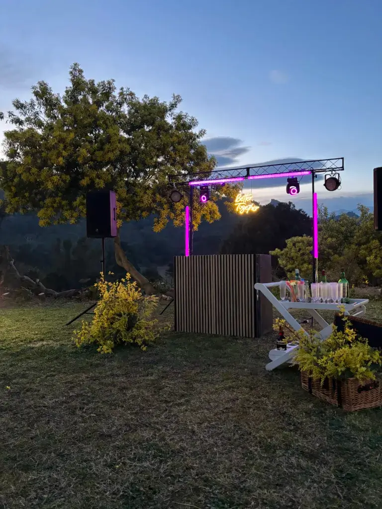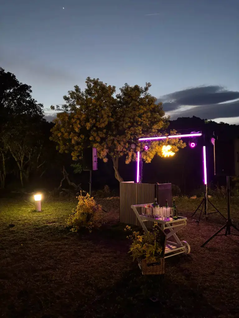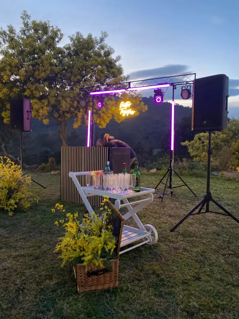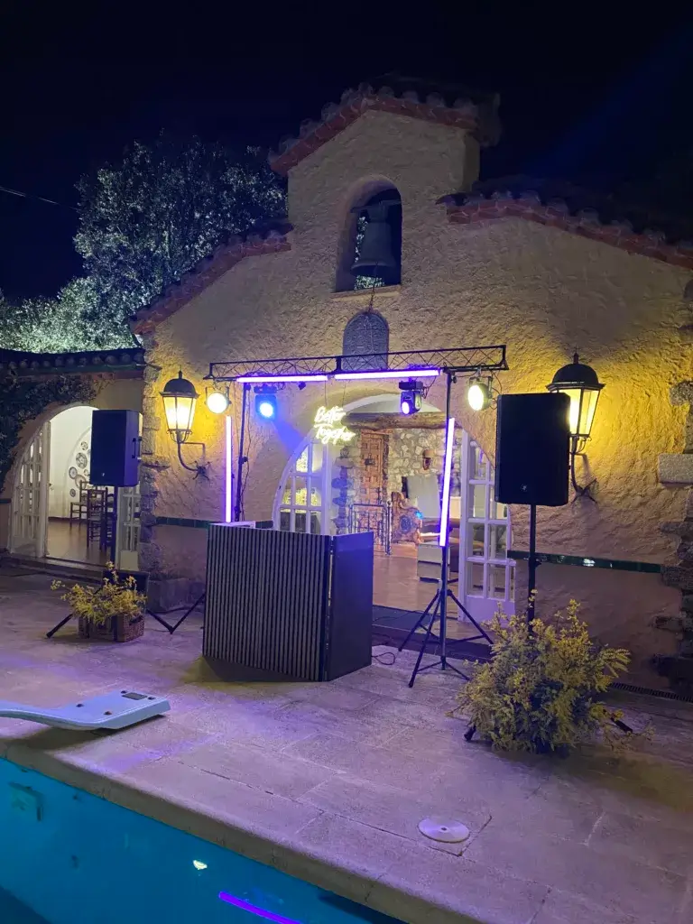 Perfecto para bodas en exterior, fincas grandes o espacios que permiten una producción más ambiciosa. La iluminación se convierte en un espectáculo sincronizado, el sonido llena cada rincón, y el DJ se convierte en el maestro de ceremonias de una fiesta inolvidable.